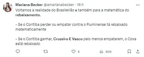 Ao projetar o futuro das duas equipes, no entanto, o comentarista expressou preocupação. Ele afirmou que, se mantiverem o mesmo desempenho, Cruzeiro e Vasco provavelmente estarão novamente lutando para evitar o rebaixamento no próximo ano.