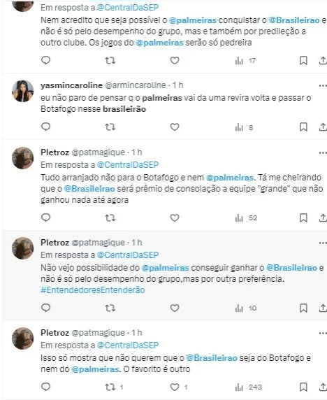“O Palmeiras vai brigar pro título. Porque o Cuiabá ganhou de 1 a 0 do Botafogo, agora, no Engenhão. Terminou o jogo. Vai perder o campeonato”, disparou Neto.