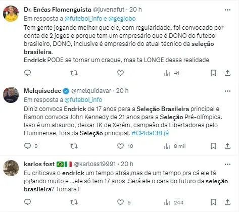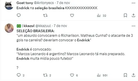 “Mas Endrick será superior a todos os atacantes, disso não tenho dúvida alguma. O que esse jovem fará na Europa, vocês não têm ideia. Não sei como é sua mentalidade, já que não o conheço pessoalmente, mas vocês não têm noção do que esse garoto é capaz de alcançar”, afirmou Neto.