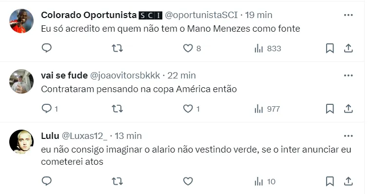 Sonho da Raposa, Alario, no entanto, está perto de fechar com o Internacional para 2024. A informação é de Vagner Martins. De acordo com ele, as chances são enormes de um acordo acontecer.