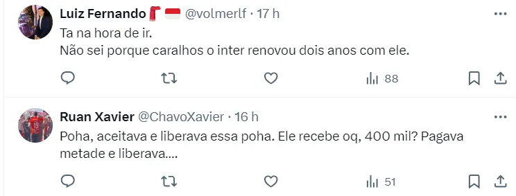 Ainda de acordo com a fonte, o Vasco também tentou se aproximar do jogador por esses mesmos moldes, mas o Inter recusou. Um clube da MLS demonstrou interesse, mas não passou disso.