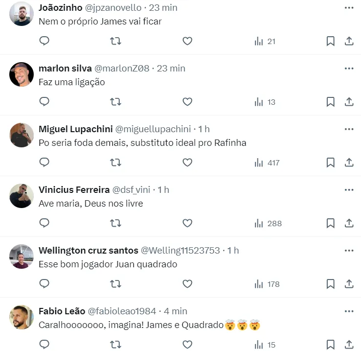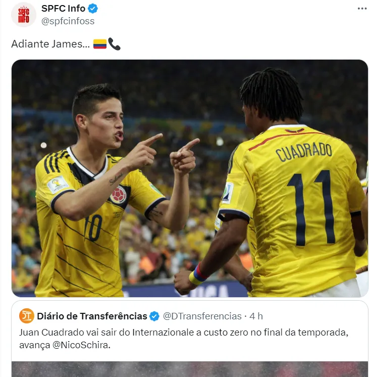 Com a saída da Inter, torcedores do São Paulo pedem que James Rodríguez entre em cena para convencê-lo a jogar no Tricolor. Eles são parceiros de Seleção e, fora de campo, grandes amigos.