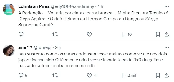 No entanto, a ideia de Augusto Melo é sentir qual seria a reação da torcida com uma possível volta antes de realizar uma proposta oficial ao profissional de 60 anos.