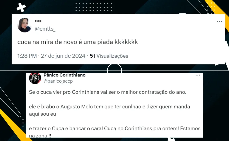 Informações de Samir Carvalho dão conta de que a diretoria do Corinthians avalia Cuca positivamente, mas não houve nenhum contato no momento e dificilmente um acordo deverá acontecer. Assim, outros dois nomes são alvos.