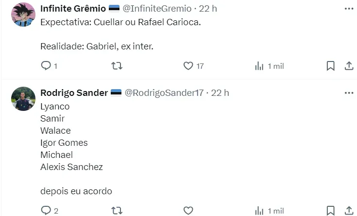O Grêmio também está interessado na contratação de zagueiros e atacantes para a temporada. É nisso que surgem novamente os nomes de Michael, do Al-Hilal e Sánchez, em fim de contrato com Inter de Milão.