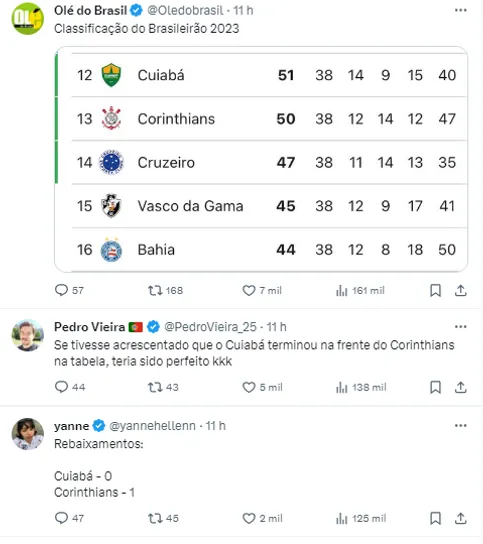 “A equipe está na elite do futebol nas últimas quatro temporadas e representa todo o estado de Mato Grosso na Série A do Brasileiro. O Cuiabá EC não irá aceitar comentários desrespeitosos que ferem a imagem do clube“, completou a equipe mato-grossense.