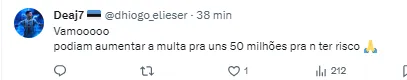 O clube não vai aceitar a saída do jogador de 32 anos sem o pagamento da multa avaliada em R$ 20 milhões.