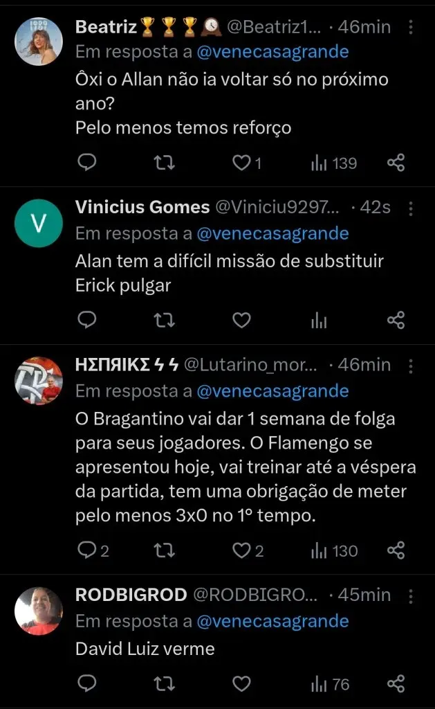 Até o final do Campeonato Brasileiro, o Rubro-Negro ainda joga contra América FC (fora), Atlético Mineiro (casa), Cuiabá (casa) e São Paulo (fora).