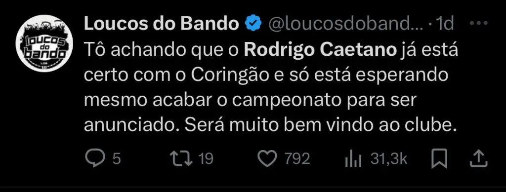 Segundo informações do portal Blog do Macedo, o Corinthians já tem novo gerente de futebol, e ele será Rodrigo Caetano. O anúncio oficial deve ser feito em 2024.