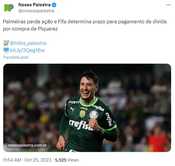 Segundo a ESPN, o Palmeiras acredita que não corre risco de sofrer punições e assegura que cumprirá todos os pagamentos pendentes.