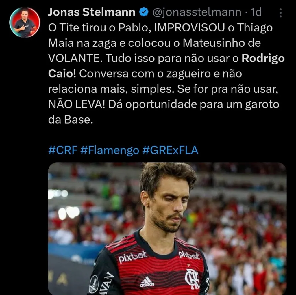 O zagueiro Rodrigo Caio deve encerrar sua passagem pelo Flamengo no final desta temporada. Multicampeão pela equipe carioca, o zagueiro não será utilizado por Tite em 2024.