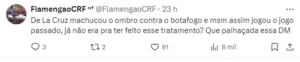 Desde que foi contratado, De La Cruz soma quatro jogos disputados pelo Flamengo. Apesar de ainda não ter participado de gols, já vem sendo bastante elogiado pela Nação.
