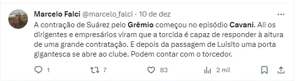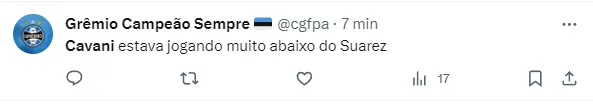 Isso porque, de acordo com o portal Sou Grêmio, Cavani foi oferecido ao clube do Rio Grande do Sul, que segue em busca de um substituto para o também uruguaio Luis Suárez.