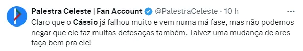 Entretanto, o concorrente da Raposa não foi revelado. Fato é que, se Cássio chegar ao time azul de Belo Horizonte, será uma das lideranças deste novo ciclo do time.