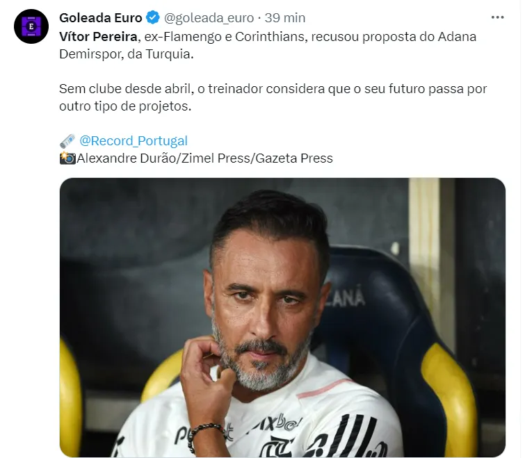 Recentemente, Vitor Pereira chegou a ficar perto de assumir um clube do futebol espanhol, mas os rumores logo perderam força e o treinador seguiu como um técnico livre no mercado.