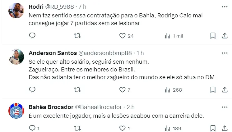 Recentemente, o Bahia fechou com Éverton Ribeiro, ex-parceiro de Rodrigo Caio, o que poderia facilitar uma ida do defensor para o Tricolor, isso sem mencionar o fator Ceni, que tem uma boa relação com Rodrigo.