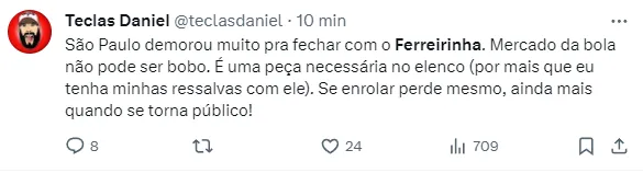 Nas últimas janelas de transferências, o nome do velocista também foi bastante especulado em clubes do exterior, mas nada se concretizou e Ferreira seguiu no Tricolor.