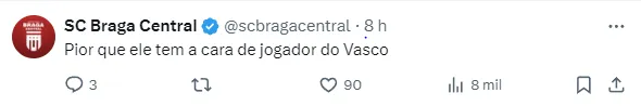 “Meu sonho é um dia vestir essa camisa que tem um peso enorme, uma torcida muito apaixonada. O desejo de jogar no Vasco continua sempre, porque é meu time do coração”; finalizou o atleta.