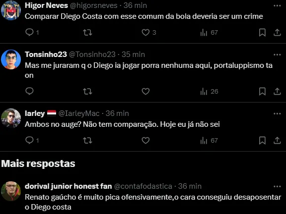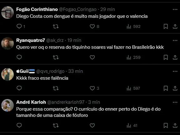 No meio de toda essa alegria, o Sofascore aproveita para comparar as estatísticas de Diego Costa e Enner Valencia a partir do momento que o espanhol ex-Atlético de Madrid estreou com a camisa gremista.