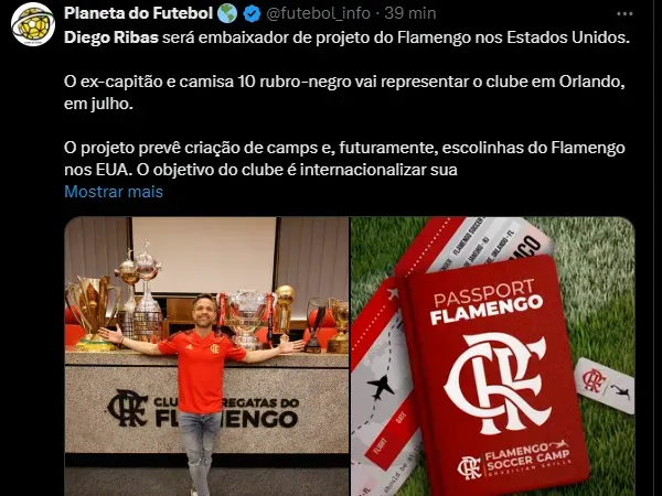 “O ex-capitão e camisa 10 rubro-negro vai representar o clube em Orlando, em julho. O projeto prevê criação de camps e, futuramente, escolinhas do Flamengo nos EUA”, informa a setorista Leticia Marques, do Globo Esporte.