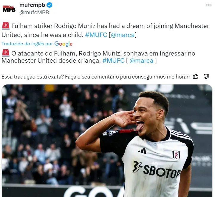 Vivendo seu melhor momento da carreira, o ainda jovem Rodrigo Muniz, cria do Flamengo e atualmente no Fulham, da Inglaterra, pode pintar como grande reforço do Manchester United na próxima temporada.