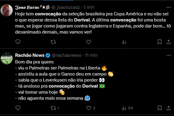 O técnico Dorival Júnior acaba de convocar a Seleção Brasileira para a disputa da Copa América. A manhã foi movimentada na sede da CBF, com a lista da Seleção Feminina anunciada também.