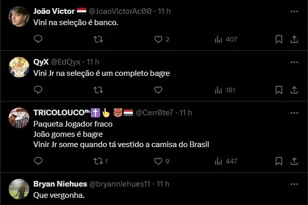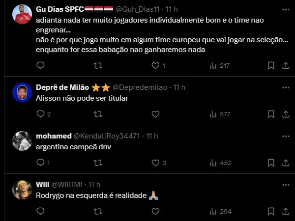 A Seleção Brasileira apenas empatou diante dos Estados Unidos. Rodrygo abriu o placar aos 17 minutos do primeiro tempo, enquanto Christian Pulisic empatou com 26 da etapa inicial.