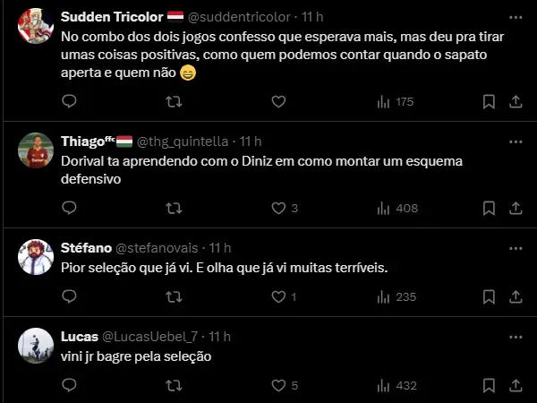Dorival abriu o jogo ao ser entrevistado pela CBF TV e fez um balanço dos duelos preparatórios de olho na Copa América. A Seleção estreia no dia 24 de junho, contra a Costa Rica.