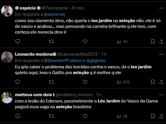 Desta forma, Ederson não enfrenta Inglaterra, em Wembley, e Espanha, no Santiago Bernabéu, nos dias 23 e 26 de março, respectivamente. Há quem peça Léo Jardim entre os 26 convocados.