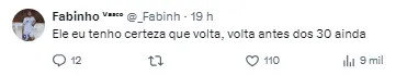 A torcida vascaína se manifestou na web após a declaração pedindo o retorno do jogador o quanto antes.