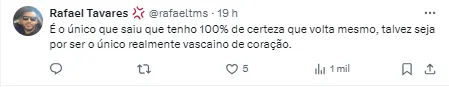 Contudo, uma declaração nas últimas horas foi o que chamou a atenção e agitou a torcida vascaína nas redes sociais.