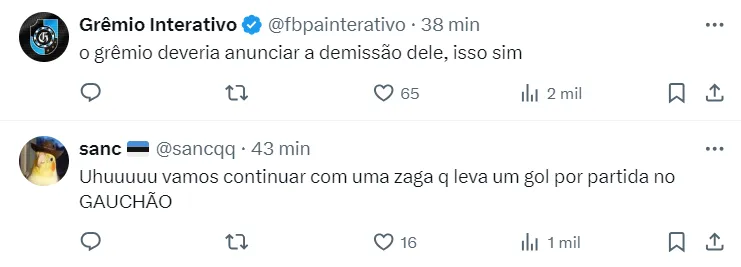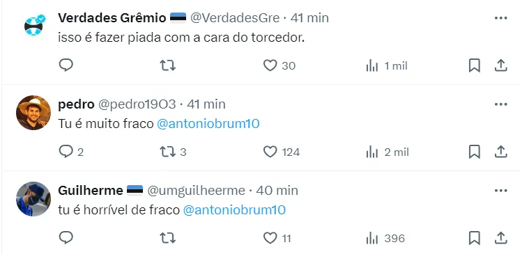 Na web, parte da torcida do Tricolor reagiu negativamente com a declaração de Brum, uma vez que a temporada brasileira será bastante disputada. O Inter, por exemplo, maior rival gremista, reforçou com grandes nomes, o último deles, Thiago Maia.