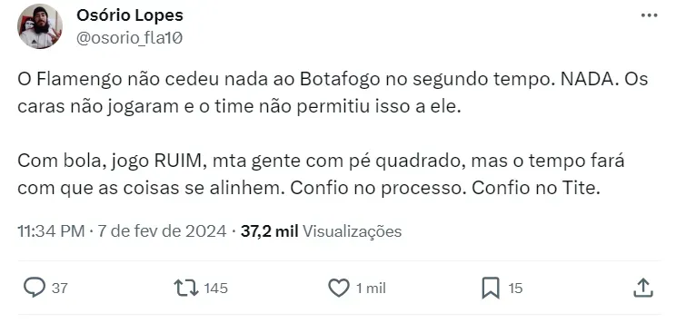 Apesar da vitória, o desempenho do Flamengo foi bastante criticado por parte da torcida nas redes sociais. Na visão dos flamenguistas, o time treinado por Tite já deveria estar jogando melhor na temporada.
