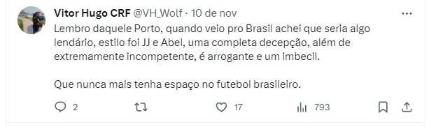 Vítor Pereira segue livre no mercado da bola desde que deixou o Flamengo, ainda no primeiro semestre do ano. No futebol brasileiro, o português também somou passagem pelo Corinthians.