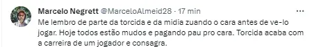 “Se depender do professor e de mim também, a meta é três pontos todo jogo. Ele cobra muito da gente a vitória. Um treinador que tem currículo vitorioso, ele traz isso para a gente e abraçamos a ideia de ser um grupo vitorioso. A gente está no caminho certo”, disse.