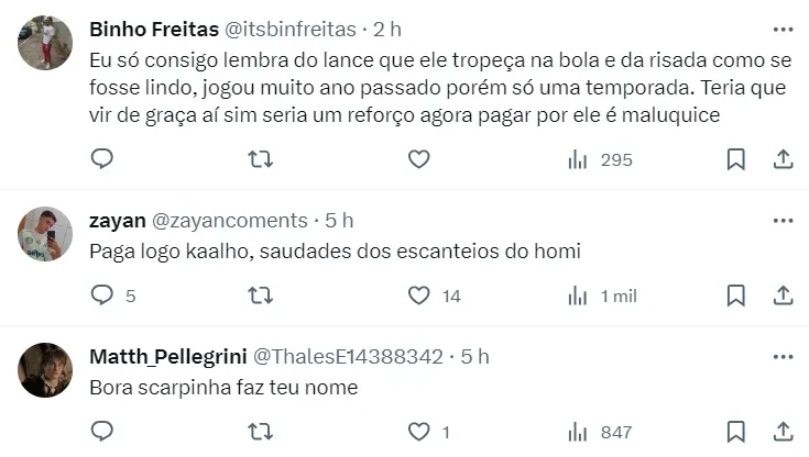 O Palmeiras sondou a possibilidade de ter Scarpa e foi informado de que apenas um acordo permanente seria considerado, com a exclusão da opção de empréstimo.
