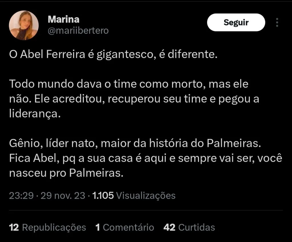Restam apenas duas partidas para o fim do Campeonato Brasileiro, e o alviverde poderá ser campeão de forma antecipada na próxima rodada. Caso isso se confirme, colocará o português em um pedestal ainda mais alto no futebol brasileiro.