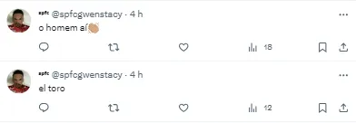 “Foi um começo de ano muito complicado para mim. Sou um cara que sempre me dediquei, que me cuido muito, tenho até fisioterapeuta em casa. Fiquei muito triste, nunca tinha me machucado assim. Perdi quase cinco meses, um período que me machucou bastante, eu e meus familiares. Pude fazer o gol hoje, dar a vitória ao São Paulo e agora é continuar trabalhando firme”.