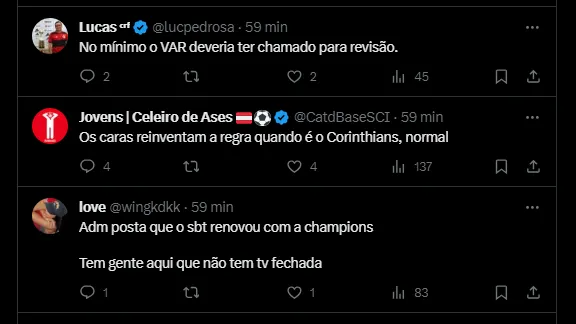 Edmundo, por exemplo, ficou chateado com a situação, apesar da polêmica do pênalti que muitos acham que foi cometido por Gabriel Moscardo. O áudio do VAR divulgado pela CBF escancara a decisão da arbitragem.