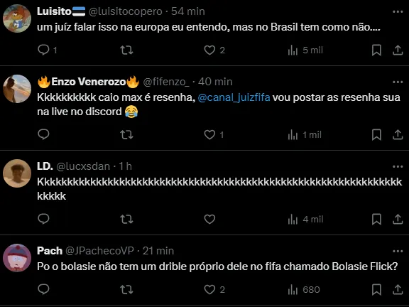 Além do conselho de Caio Max Augusto Vieira, o árbitro ainda fez uma revelação ao gringo: “No final da partida, o árbitro ainda disse que jogava comigo no Fifa”, acrescentou.