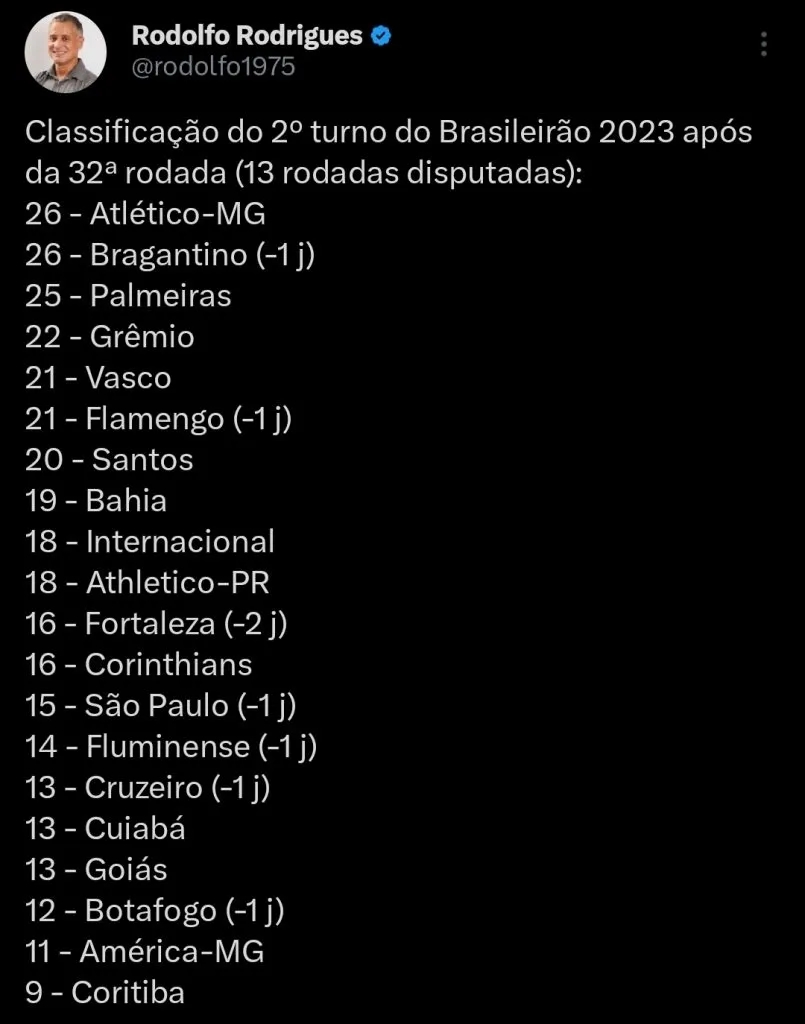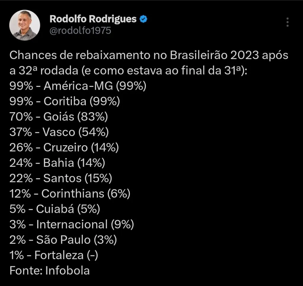 “Eu vou falar para vocês. Quem briga para cair é Corinthians, Santos, Bahia e Vasco.”, analisou o apresentador.