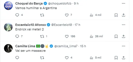Vale lembrar que o Brasil não vence os argentinos há três jogos. No último jogo, no dia 16 de novembro de 2021, pelas Eliminatórias para a Copa de 2022, terminou com empate sem gols. No jogo anterior, a Argentina venceu por 1 a 0 pela Copa América de 2021 e um jogo antes, os argentinos venceram pelo mesmo placar pelo Amistoso em 2019.