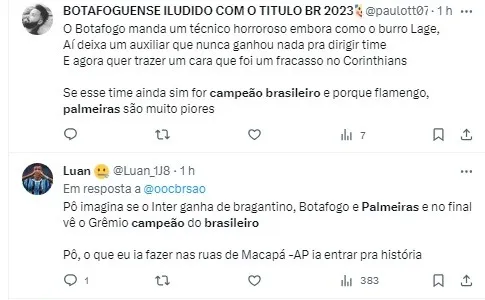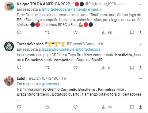 “Enquanto isso, a ex-equipe do Leivinha é considerada por muitos como favorita ao título nesta reta final, principalmente porque apareceu um fato novo chamado Endrick. O garoto de 17 anos está voando, muito graças ao ótimo trabalho mental feito por Abel Ferreira”, complementou o comentarista.