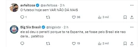 A marcação das penalidades geraram a indignação entre os espectadores, que expressaram sua frustração e descontentamento com a decisão do árbitro. Muitos questionaram a legitimidade da falta e criticaram a interpretação do lance, considerando-o controverso e passível de debate.
