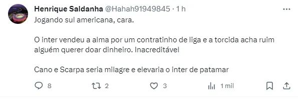 Porém, agora, Cano pode virar uma ‘dor de cabeça’ para o Flu. Isso porque, de acordo com o portal Revista Colorada, o artilheiro é o grande sonho de Delcir Sonda para o Internacional.
