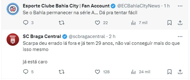 Ontem, o portal GOAL publicou que o Nottingham Forest quer quatro milhões de euros para liberar o futebol do brasileiro. Em reais, na atual cotação, são cerca de 21 milhões.