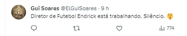 Mas não foi o “anúncio” feito pelo técnico que chamou a atenção da torcida nas redes sociais, mas sim uma publicação feita por Endrick.