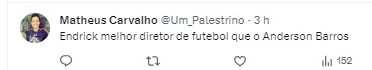 A torcida do Palmeiras se manifestou após a publicação viralizar: “Ele não ia soltar essa atoa do nada. Acho que aí tem coisa!”, “Trabalhando mais do que o Barros”, “Está trabalhando mais do que o diretor de futebol”, “O Maurício vale o que pedem, Leila Pereira!”