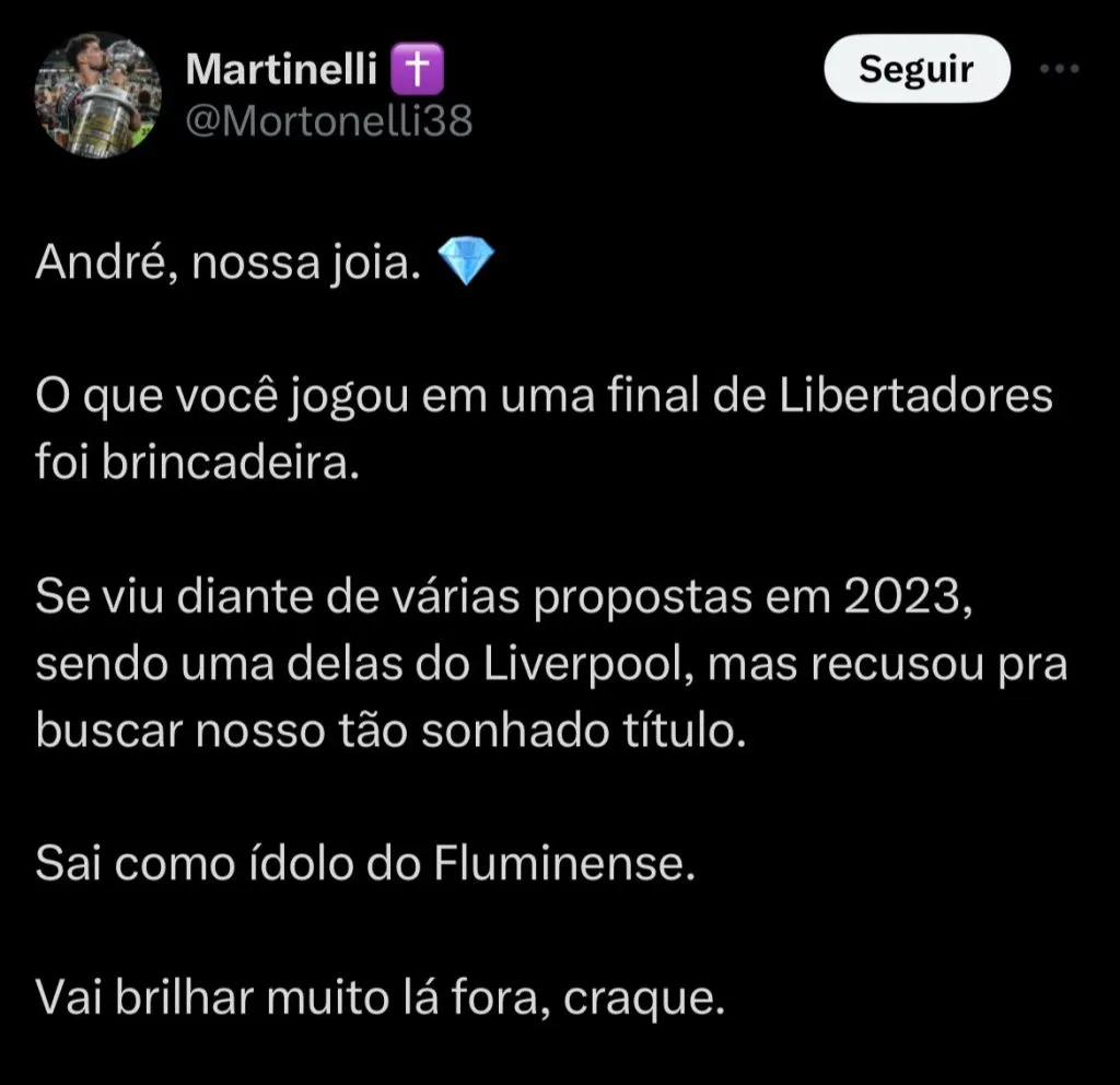 André é um dos grandes destaques do Futebol Brasileiro e é cria da base do Fluminense. O clube espera arrecadar cerca de 30 milhões de Euros com sua venda.