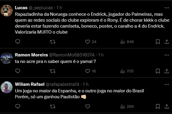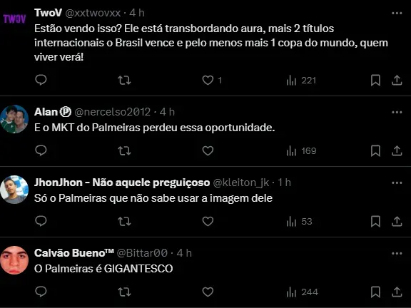 “Espero que possam ser dois jogos maravilhosos e que a gente possa sair vitorioso”, finalizou a joia formada nas categorias de base do Palmeiras, mas já vendida para defender as cores do Real Madrid.